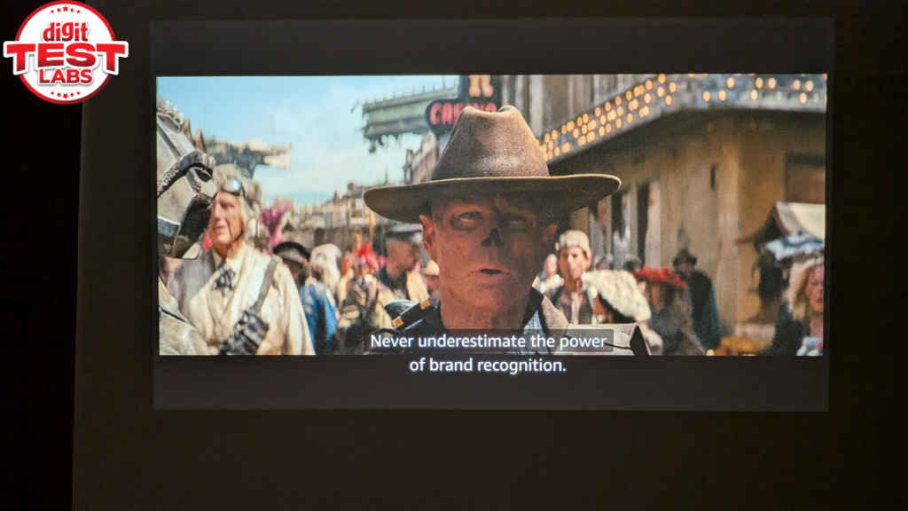 It supports brightness of 3,000 ANSI lumens, and in a well-lit room, projected on an off-white wall, the image looks washed out. It is visible, but for something worth enjoying, you’ll have to turn off the light in the room.