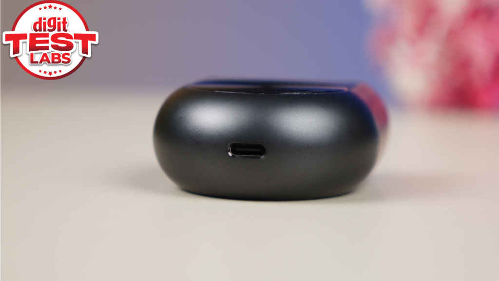 On the front, there is a circular metal disc with an LED strip positioned at 1 o’clock. That LED tells you the active, charging and pairing state. The disc isn’t mechanical and doesn’t offer any functional value. It is just there for a look, which is the signature of Noise’s Master series.