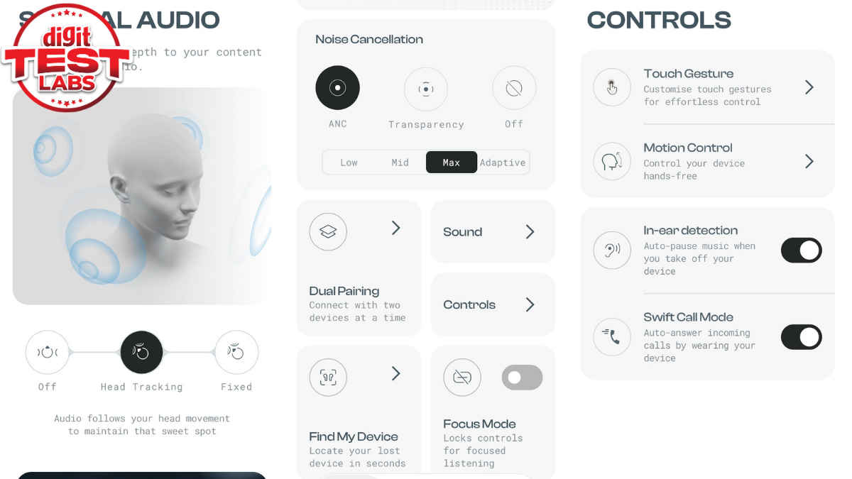 The Noise Audio app is central to managing many of these features. Through the app, you can toggle ANC modes, adjust the equaliser, enable spatial audio, configure touch gestures, and locate misplaced earbuds using the Find My Device feature.