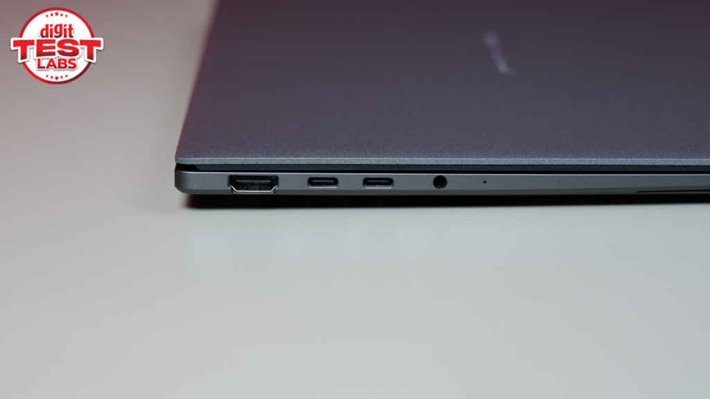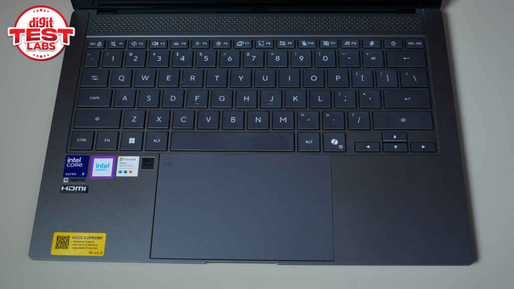 The build quality here is top-notch, which is again something you would expect from a Rs 2.5 lakh laptop. Asus is using what it calls a Ceraluminum chassis here, which aims to combine the lightness of aluminium with the durability of ceramic. What you get as a result is a surface that is resistant to scratches and smudges. During my usage, I didn’t see any fingerprints form upon the chassis even when I was typing continuously for hours. I also remember accidentally placing the laptop in the same pocket as my home keys in my bag. But when I took it out, there were no scratches found.