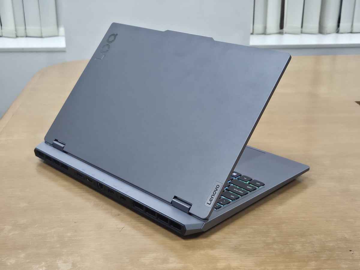 If you’ve seen a Lenovo LOQ from 2023 or 2024, you’ve seen this one. It retains that signature industrial grey aesthetic – utilitarian, stealthy, and entirely plastic (polycarbonate). While the chassis doesn’t scream “premium” like an aluminum MacBook or a Legion 7, it feels reassuringly sturdy. There’s minimal deck flex, and the hinge is solid, I could open it comfortably with one finger. It’s not trying to win a beauty pageant; it’s trying to survive your backpack. For a machine housing this much power, the weight is manageable at 2.4 kg, though you definitely won’t forget it’s there.