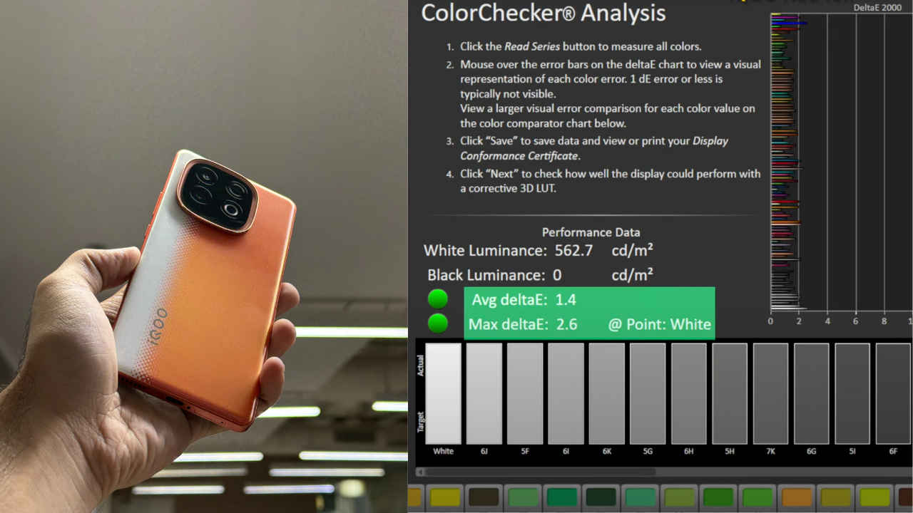 According to our Calman testing, the iQOO Neo 10 scored a delta E of 1.4, which still puts it in the excellent range. That means its colour accuracy is top-notch, and it also makes it ideal for creators, designers, or anyone who cares about true-to-life visuals.