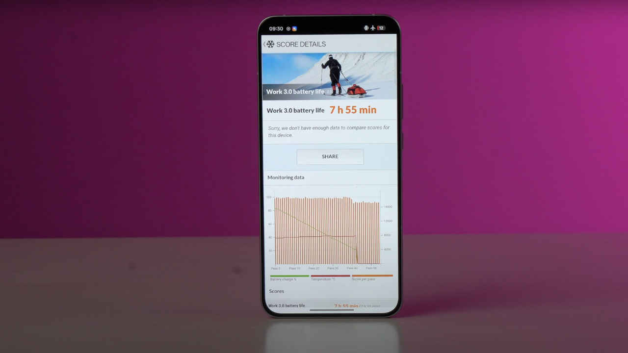 The Reno 14 Pro packs a massive 6,500mAh battery, and with that, you would expect it to be a beast when it comes to screen time, but unfortunately, that’s not the case. In the PCMark battery test, it managed just 7 hours and 55 minutes. This is pretty underwhelming for a battery this size. Ideally, a phone like this should last 10–11 hours in that test.