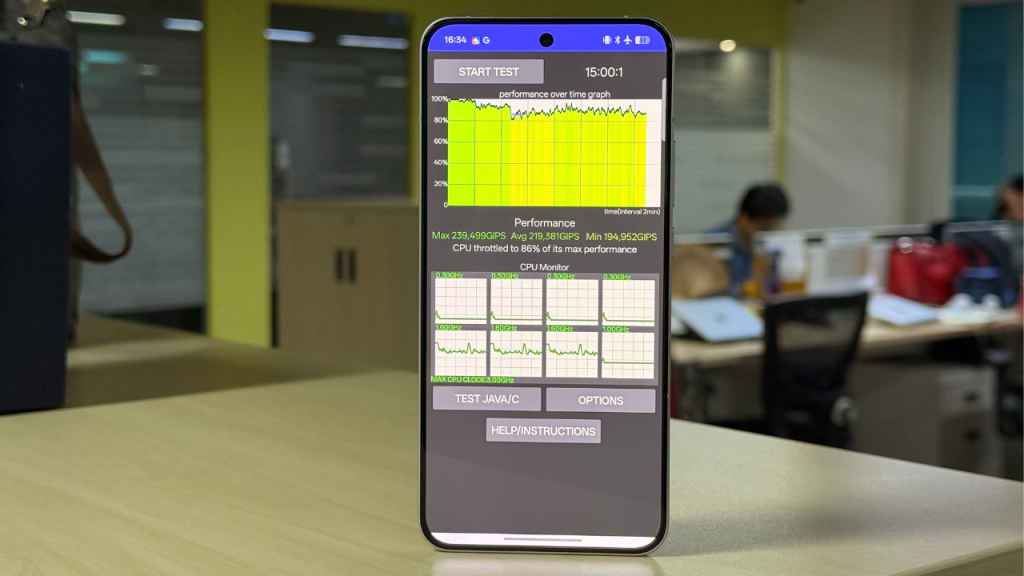 I also ran the CPU throttling test on it for 15 minutes. As you can see from the graph, whatever power it generates, it tries to keep it consistent. This means that even though the Oppo Reno 14 Pro is not the most powerful phone out there, it is well optimised and handles loads efficiently.