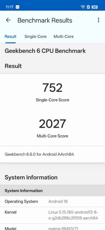 Benchmark numbers make things even clearer. On Antutu, the device scored 5,70,064, which is honestly underwhelming for a phone priced at Rs 31,999. Geekbench 6 results show a single-core score of 752 and a multi-core score of 2,027, which again puts it far behind what competitors are offering in this segment.