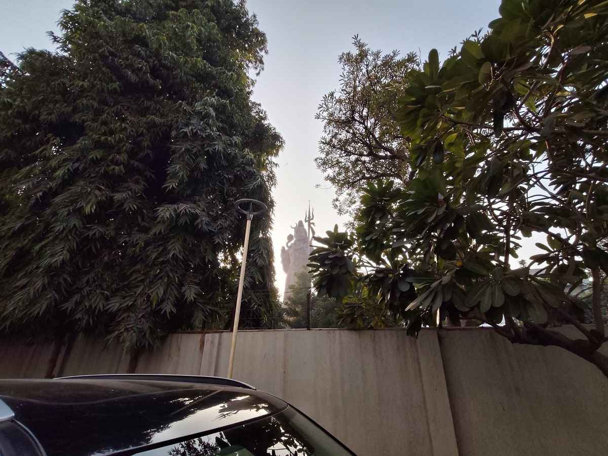 The 8MP ultra-wide remains the weaker lens. In the ultrawide shot of the Shiva statue, the overall colour temperature shifts cooler, with a faint blue or magenta tint. Centre sharpness is acceptable, but corners soften quickly. Trees and fine textures near the edges lose definition and distortion becomes visible if you inspect lines closely. It is usable for group shots and landscapes in good light, but it is clearly secondary.