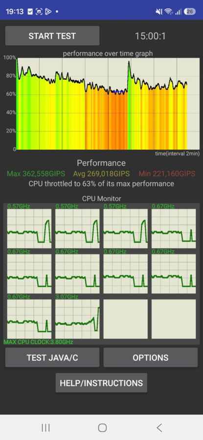 However, sustained performance is where the Galaxy S26 Plus finds its ceiling. In our CPU throttling test, the device retained around 63 per cent of its peak performance. This indicates the system is prioritising stability by dialing back performance under extended load to manage the thermals, which is a common trade-off in thin and modern flagships.