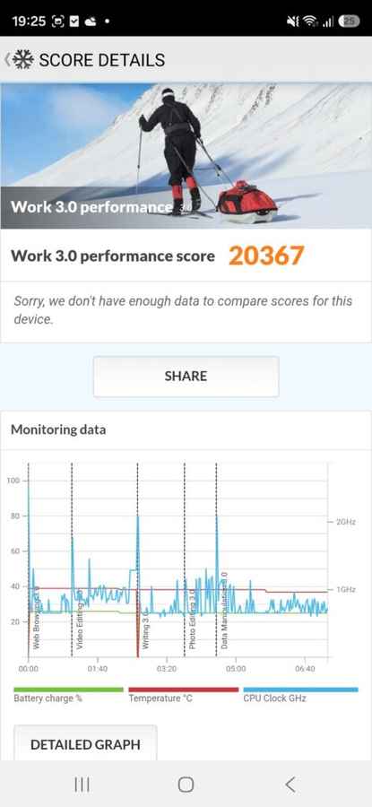 In real-world use, the battery performance is reliable. In our PCMark Battery Life test, the device lasted 19 hours and 40 minutes. With a typical mix of social media, camera use, streaming and some gaming, the phone lasts well without requiring a mid-day top-up.