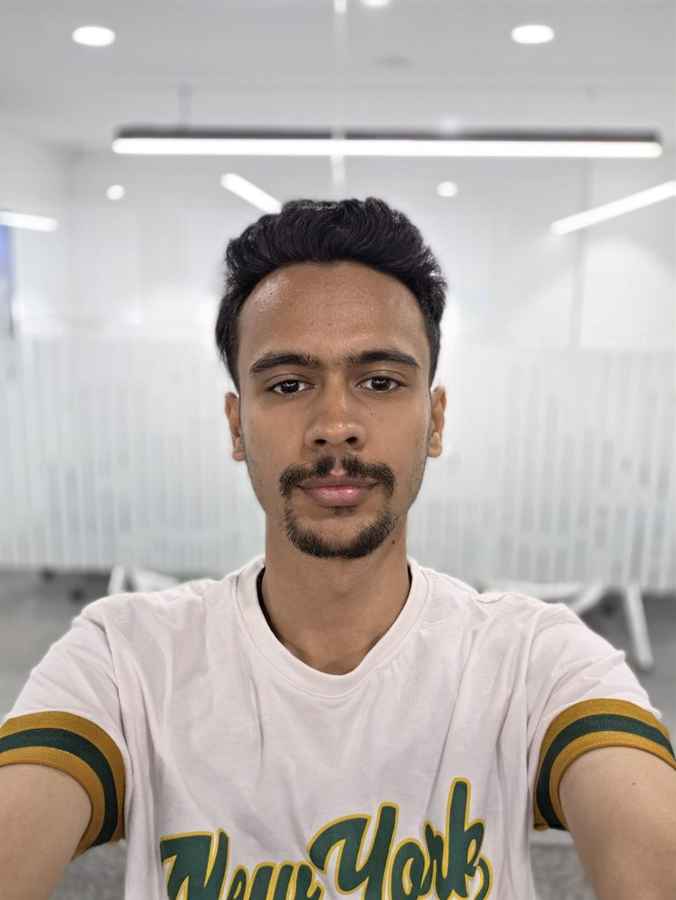 Selfies turn out well, with good details, sharpness, and proper exposure. I particularly like the selfie camera’s low-light performance, as the lens captures a good amount of detail in the output. For instance, in this photo, you can also see that it didn’t add any blue tint to the sky, giving a more natural result, as I would prefer.
