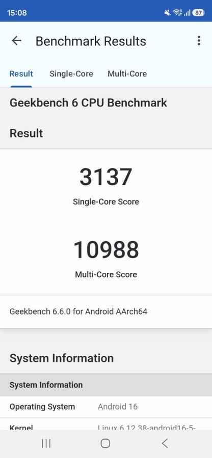 However, other benchmark scores were much better. In Antutu, it scored 3.1 million, which is great. In Geekbench 6, it scored 3,137 in single-core and crossed the 10,000 mark in multi-core score. In the 3DMark Wildlife Extreme test, it got an overall score of 7,201. Again, these are top-tier numbers that only a flagship phone in 2026 can achieve.