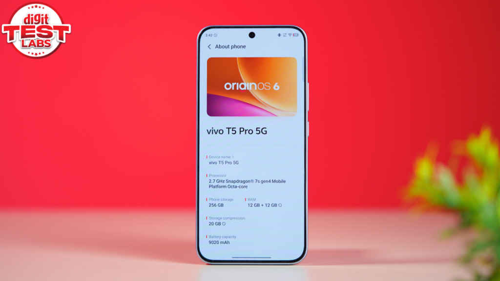 The Vivo T5 Pro is powered by the Snapdragon 7s Gen 4 SoC. Our unit comes with 12GB of LPDDR4X RAM (should’ve been at least LPDDR5 if not ‘5x’) and 256GB of UFS 3.1 storage.