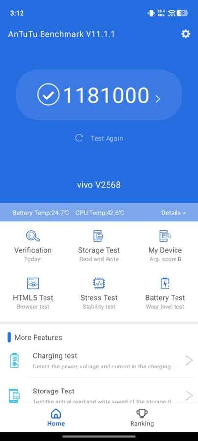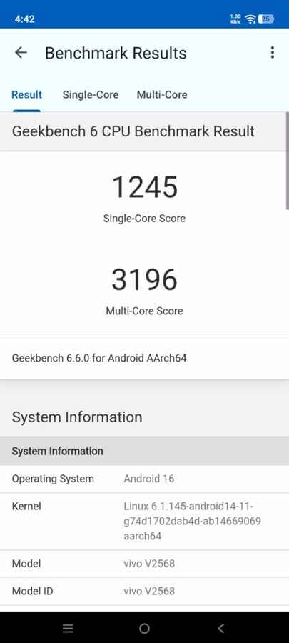 I also ran benchmarks for those who care about numbers. So, in Antutu, the Vivo T5 Pro scored about 1.18 million. In Geekbench, it scored 1,245 in single-core and 3,196 in multi-core. In the 3DMark Wildlife test, it scored 1,108, and in the CPU throttling test, the CPU wasn’t throttled at all. Although I will mention that I ran the test at the default settings for 15 minutes with 20 threads.