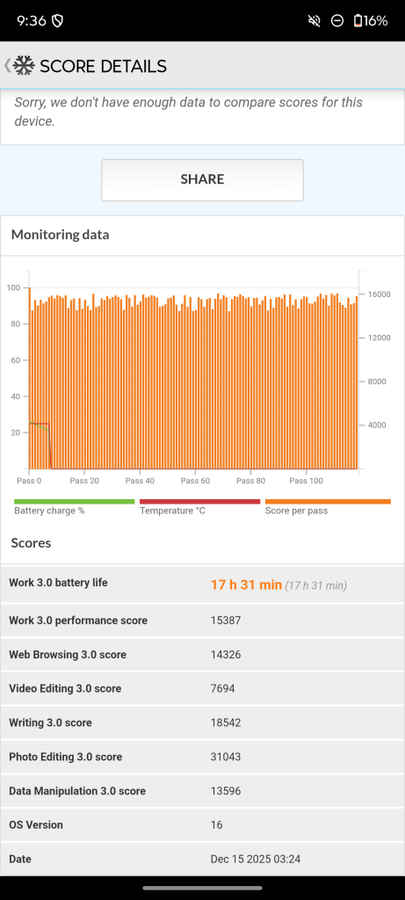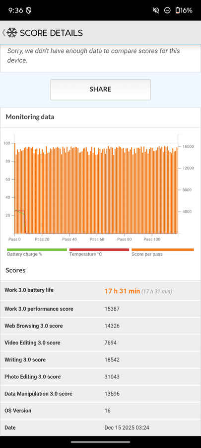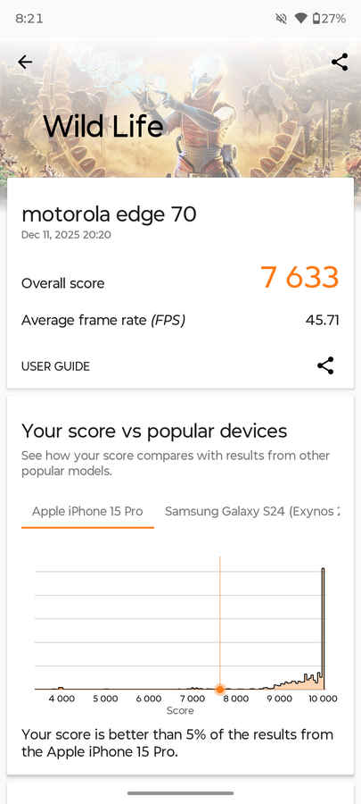 The Motorola Edge 70 features a 5,000mAh battery, which is particularly impressive given its remarkably thin 5.9mm profile. In PC Mark battery life test, the phone delivered an impressive 17.5 hours of screen-on time, and in real-world usage too, it comfortably lasted a full day with moderate use, without any need to reach for the charger early.