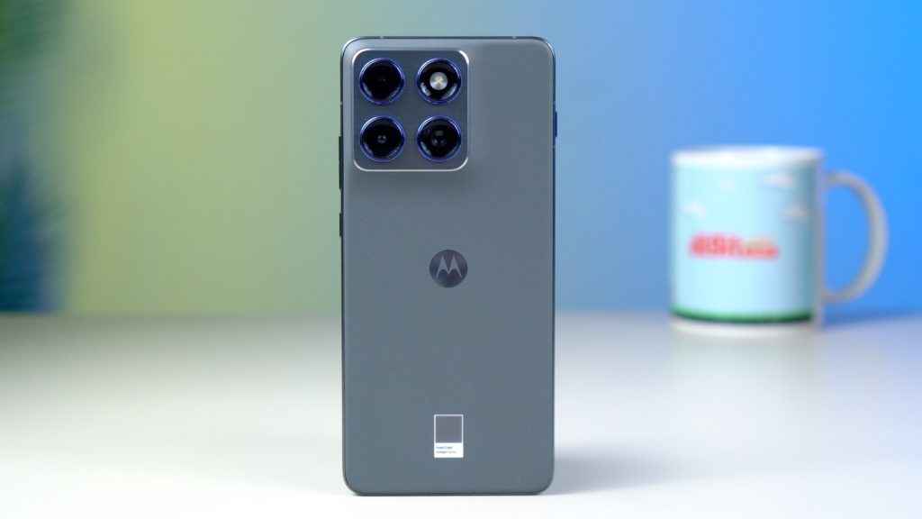 The unit I tested is finished in Pantone Gadget Grey. It looks clean and understated, with subtle blue accents around the camera rings that add just enough visual interest. Motorola also offers Pantone Lily Pad and Pantone Bronze Green for those who prefer something a little more expressive.