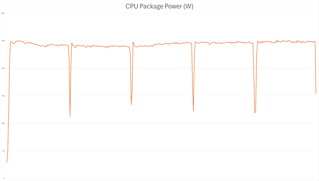 That matters, because this is a 200 W-class processor designed for serious all-core work, not just short gaming bursts. Power draw tells the more revealing story. An average package power of 230 W and a peak of 250 W make it clear that this chip is happy to consume substantial power when fully unleashed, which tracks with AMD’s 270 W PPT figure. In practical terms, the 9950X3D2 is not pretending to be an efficiency-first flagship.