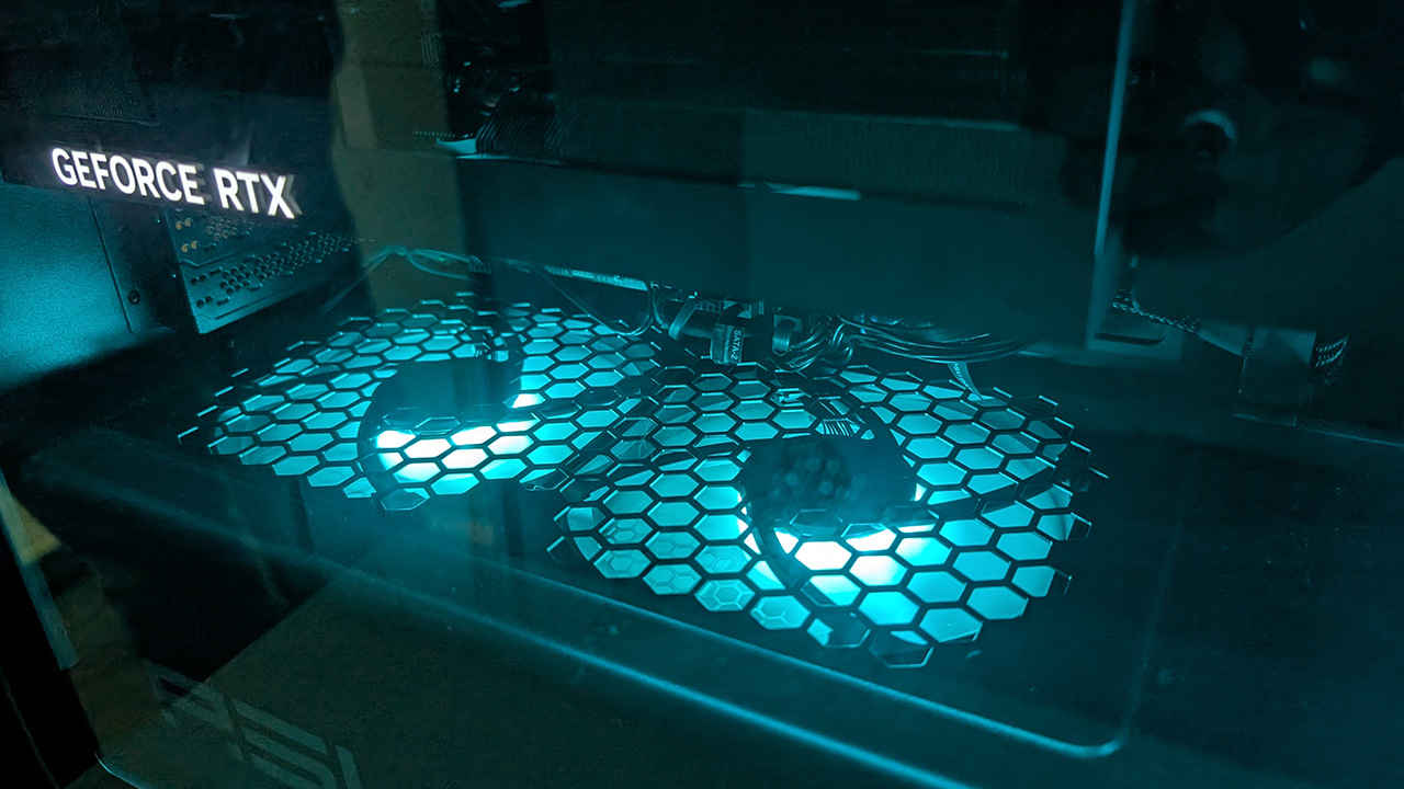 Inside, the layout appears designed to support both thermal efficiency and visual neatness. Large fans, liquid cooling, and cable routing all contribute to a chassis that looks purposeful rather than cluttered. The large front intake fans are particularly important because they help move substantial air through the case without needing to spin aggressively. That, in turn, contributes to one of the machine’s most impressive qualities: how restrained it sounds under load.