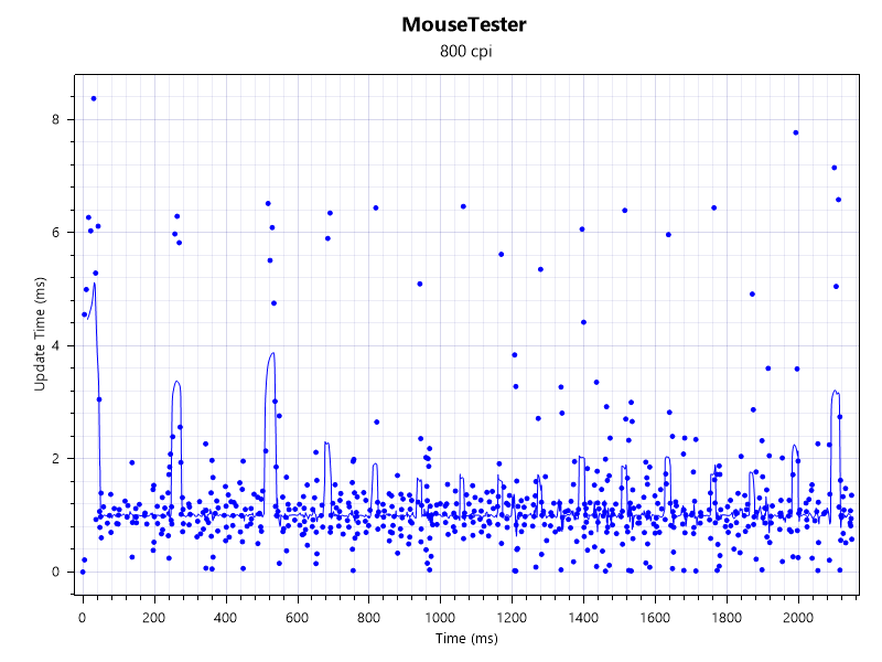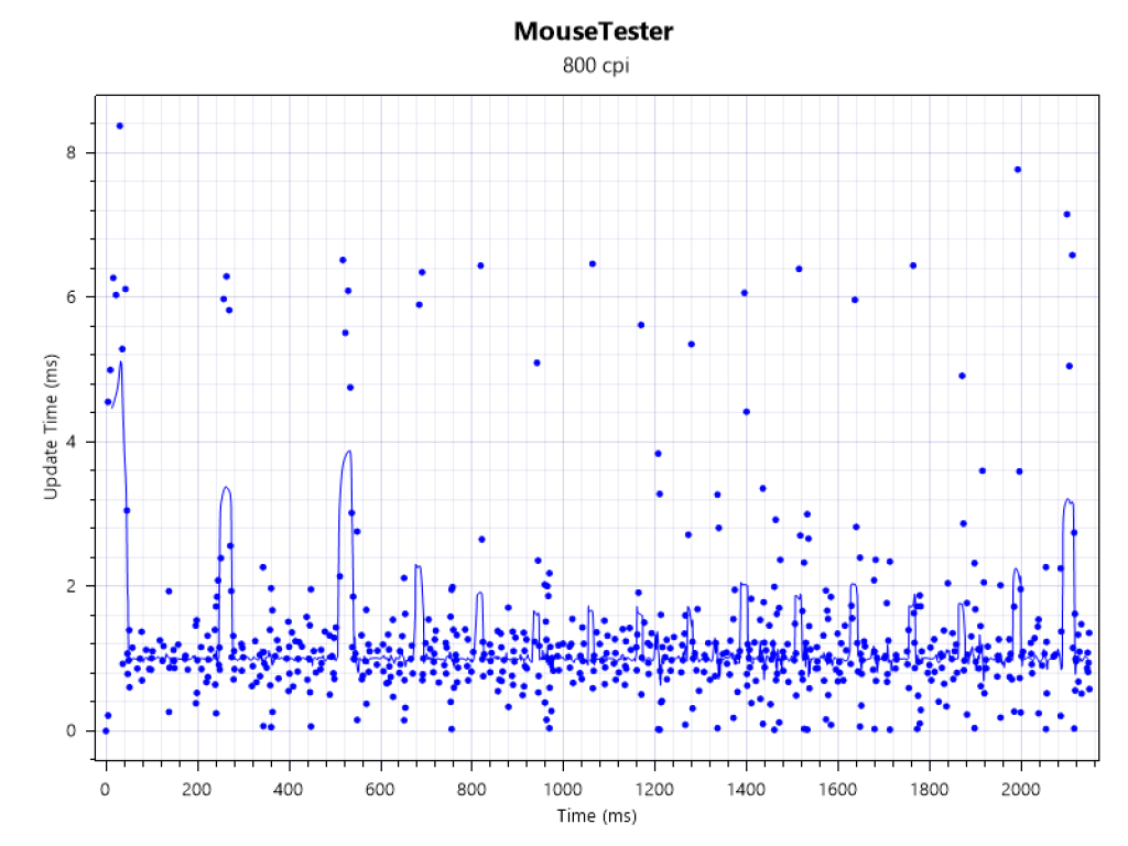I took a closer look at the sensor’s consistency, and the results were interesting. While it aims for a 1000Hz polling rate, my testing showed that the updates can be a bit “all over the place”. Occasionally, it would take more than a millisecond to register an update, creating some inconsistency in the data. However, I want to be clear: in actual gameplay, I didn’t feel any issues. The sensor still felt pleasantly good and responsive, even if the raw numbers aren’t perfectly uniform.