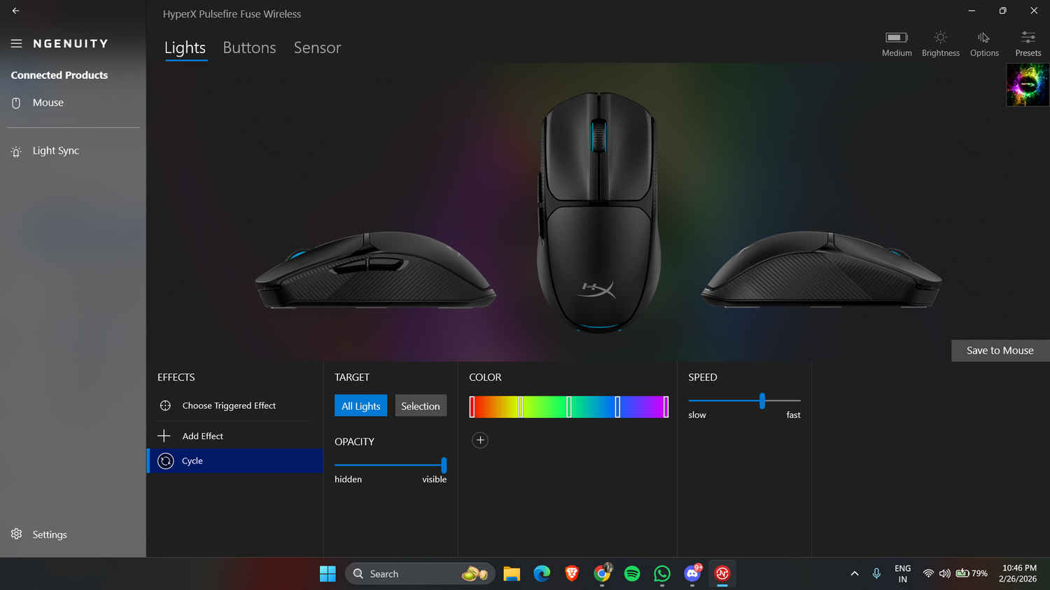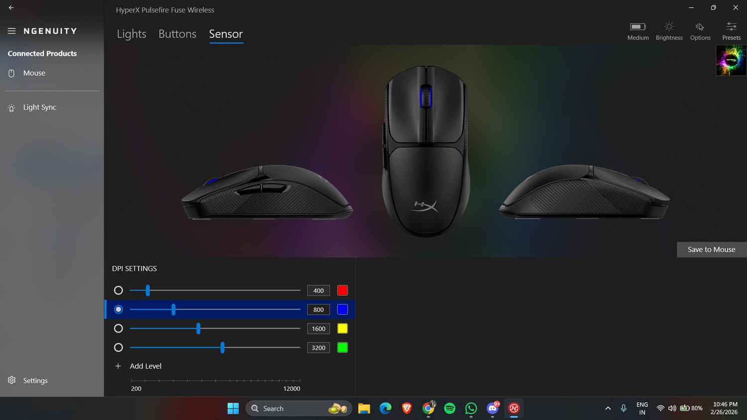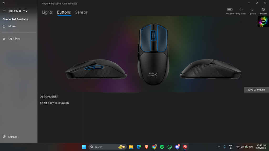 To really dial this mouse in, you’ll need to download the HyperX Ngenuity app. Compared to the massive, often bloated ecosystems like Razer Synapse, Logitech G HUB, or Corsair iCUE, Ngenuity is surprisingly lightweight. It doesn’t try to be a social network or a game launcher; it just sits in the background and does its job.