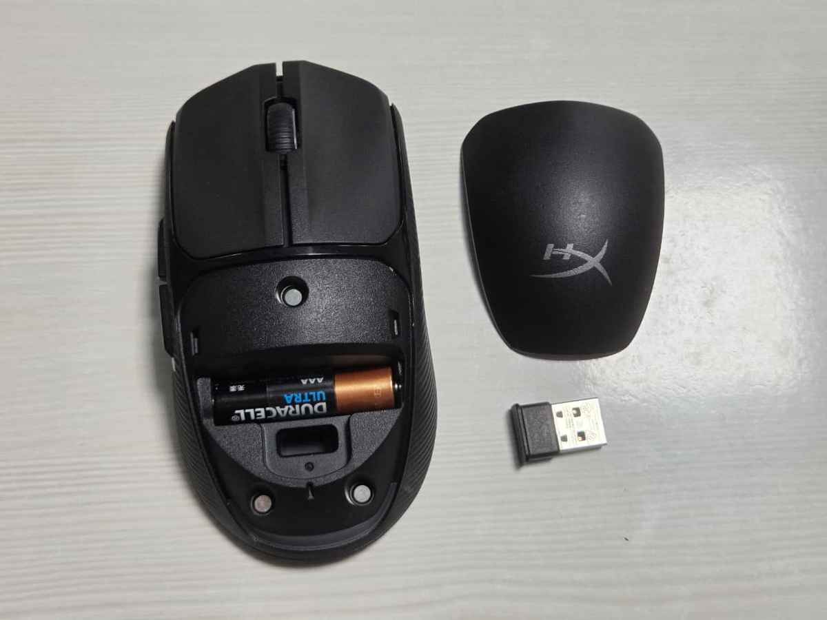 At 75 grams with the battery included, it’s definitely on the lighter side. I’m glad HyperX skipped the honeycomb “holed” look here; the solid shell feels sturdy and stays cleaner over time. The scroll wheel feels great with no noticeable issues, providing a reliable tactile response. However, there’s a catch to that “ambidextrous” shape. While the shell is symmetrical, the side buttons protrude quite a bit from the left side. If you’re a left-handed user, your pinky is going to constantly rub against those buttons, making it a pretty awkward experience. Additionally, the mouse skates are good and feel pretty in-line with other mice in this price range.