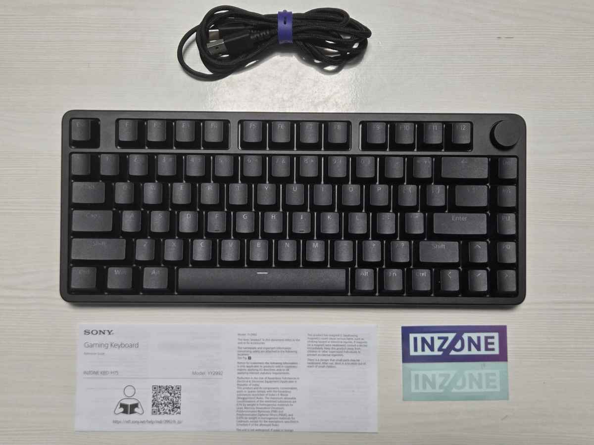 The Sony Inzone KBD-H75 presents itself as a no-nonsense gaming peripheral from the moment I opened the box. The unboxing experience is minimal but adequate, containing just the essentials. The keyboard itself, a braided Type-A to Type-C cable, user documentation, warranty information, and two Sony stickers.