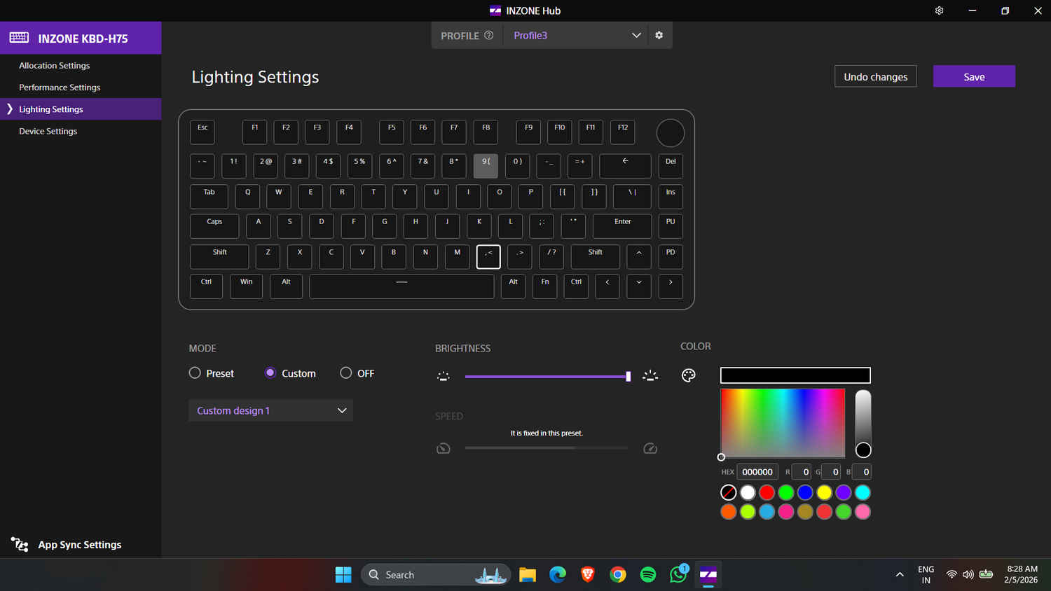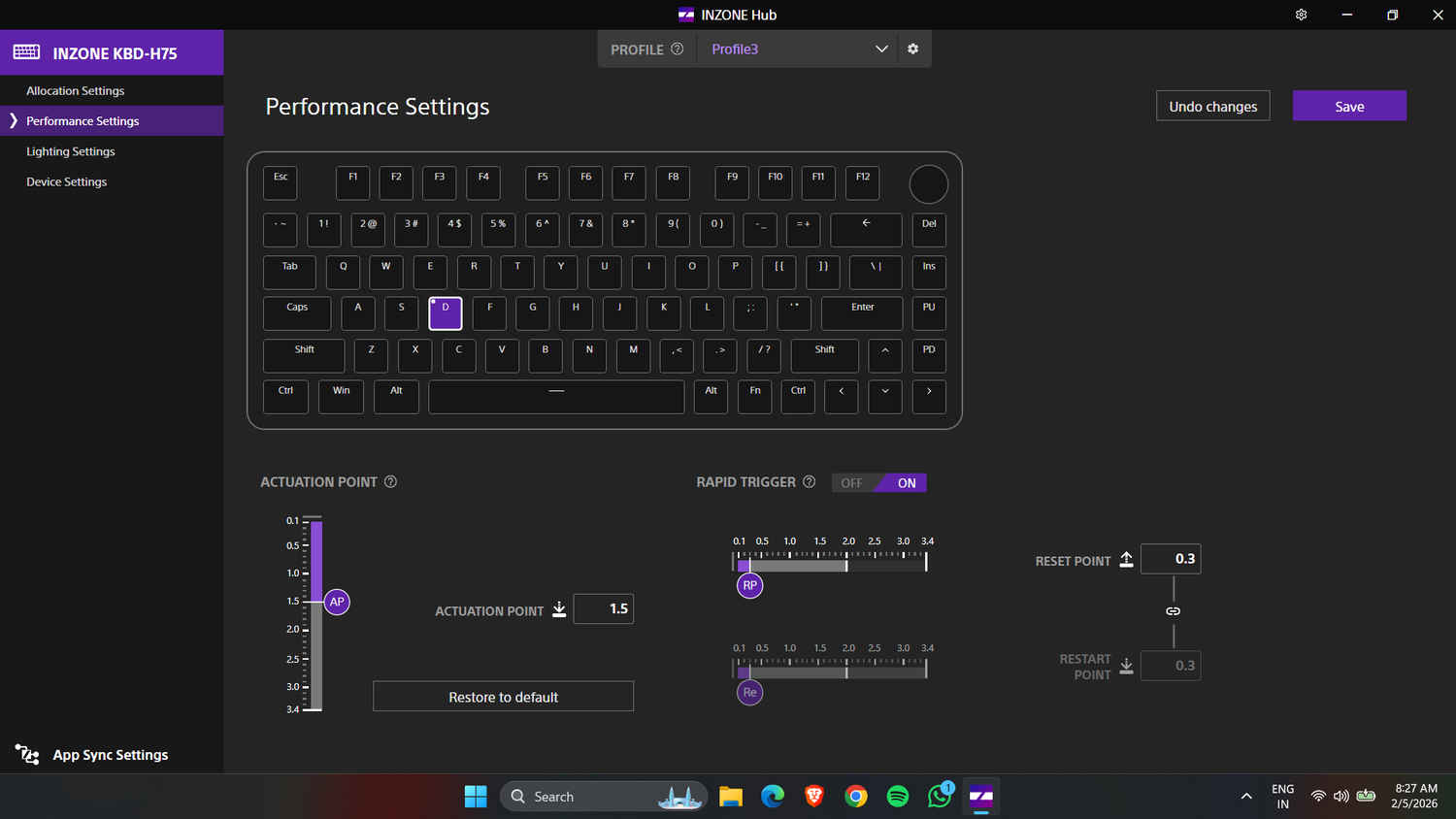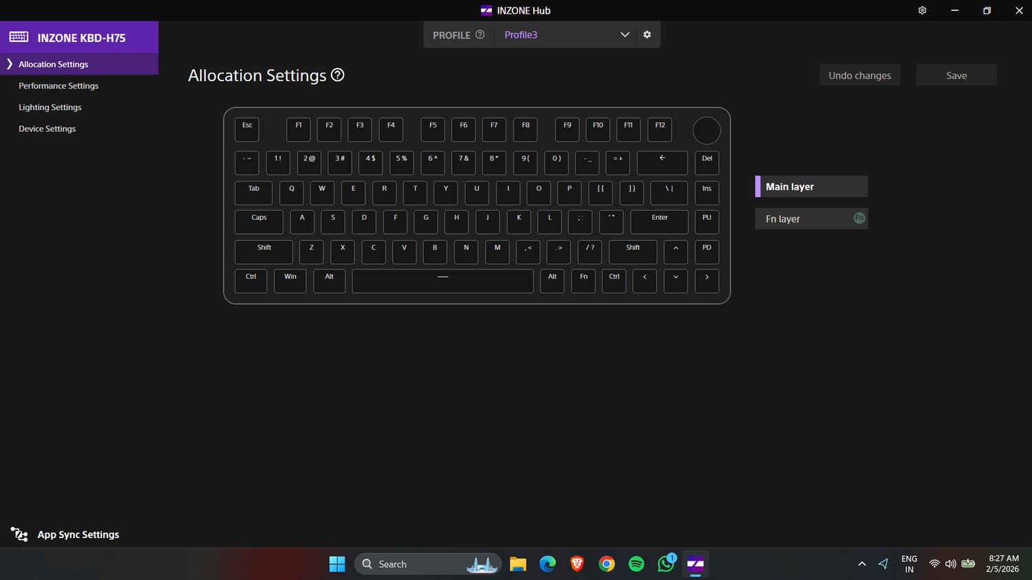 Onboard Profiles: Sony understands that pros often move between setups. The KBD-H75 can store up to five onboard profiles directly in its memory. This means I can spend hours perfecting my RGB, actuation points, and Rapid Trigger settings in the INZONE Hub at home, save them to the board, and then plug it into a work laptop or a tournament PC and have it behave exactly the same way without ever needing to install the software again.