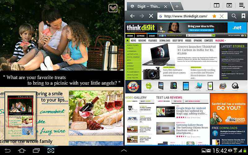 This feature is very convenient to use on a tablet and is very similar to the functionality we have seen on early Windows 8-powered tablets. The only downside is that at times while switching between the apps we faced a bit of lag, which is a downer considering the Note 800 has some stellar hardware under its hood. Hopefully, an update will fix this.