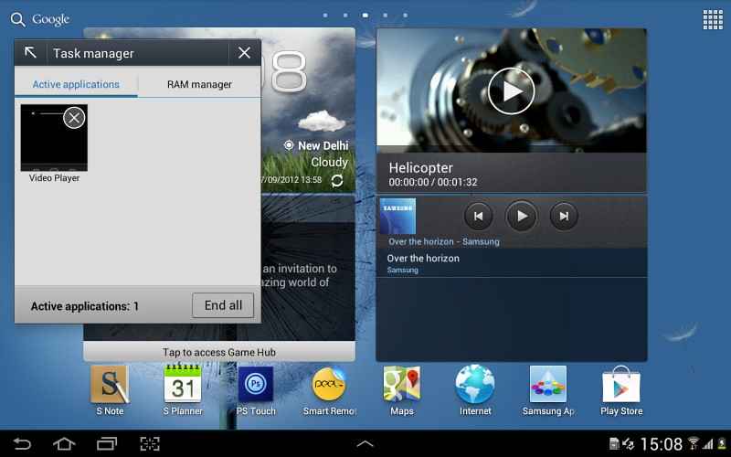 Samsung has also introduced a feature with the Galaxy Note 800, multiscreen. This feature is available only on a few apps as of now but support for more apps is expected in the future. What this means is that you can run two apps simultaneously on the device. So you can have a video playing in one half of the display and you could be browsing the Internet on the other. You could be using S-Notes in one half and checking your mail in the other.