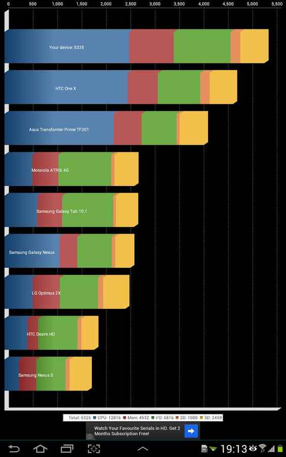 In terms of its raw performance it beat the Transformer Prime hands down. The start up time of the Prime (from shut down to lock screen) was 34.1 seconds, and the Note 800 booted up in a mere 22.5 seconds. Even in the other benchmarks, the Note 800 performed much better.
