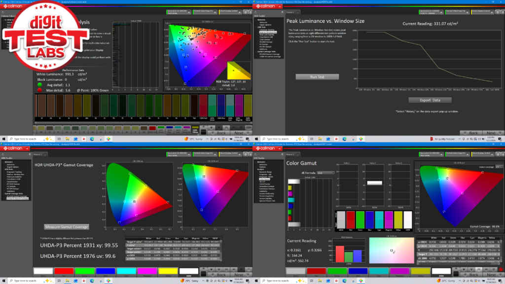 In lab measurements, the LG panel covers 99.6% of UHDA-P3, 81.68% of BT.2020, and nearly 99% of BT.709. Average Delta E measured 1.1 in HDR and 2.1 in SDR, which is comfortably within acceptable limits for non-calibrated viewing.