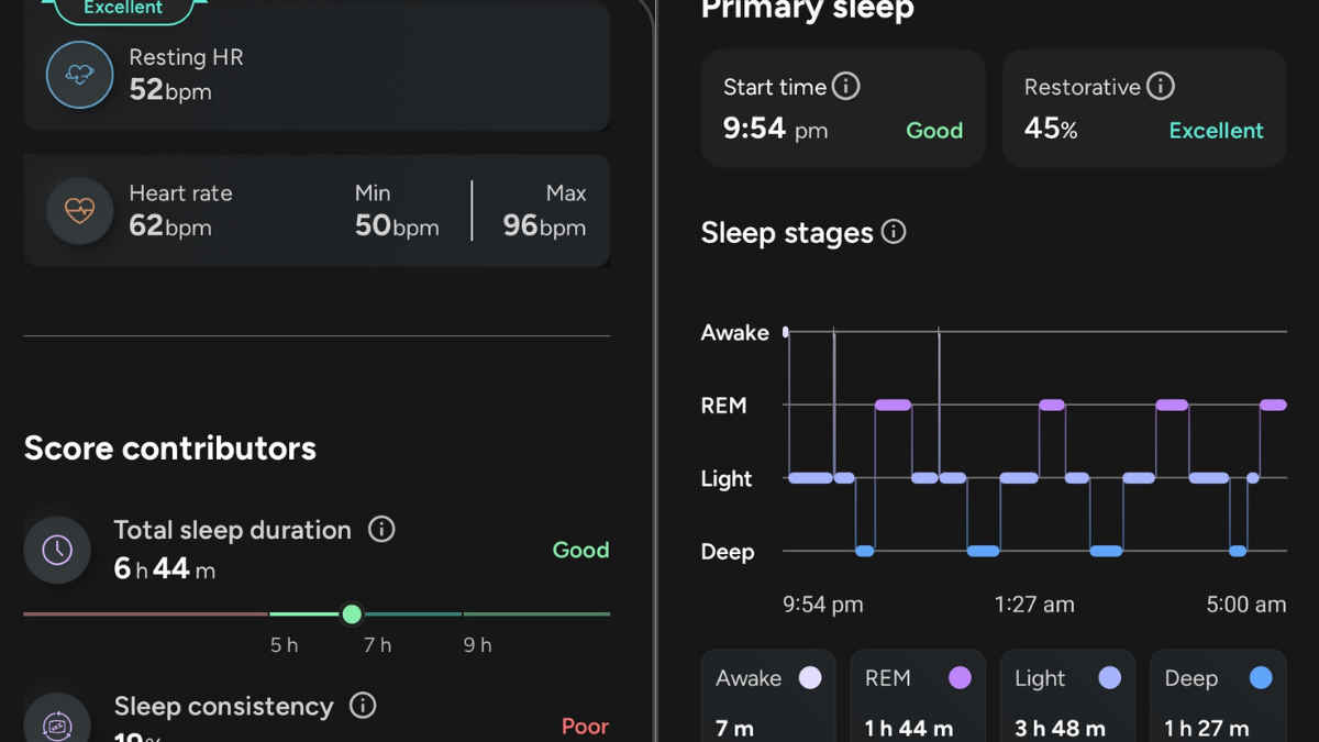 - sleep score, a grade like Poor, Good, and Excellent.