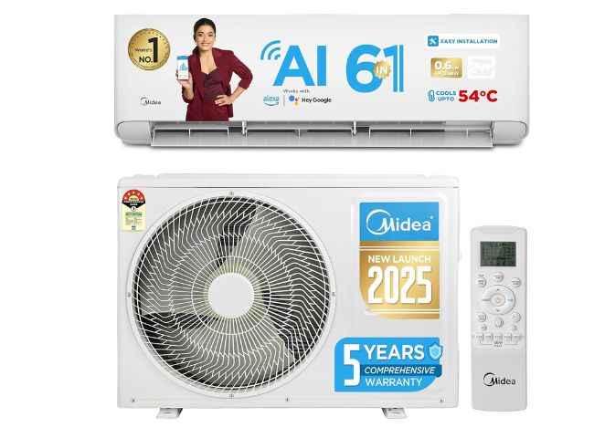 SurveyMidea 1.5 Ton 5 Star,5 Years Warranty*, 6-in-1 Convertible AI+ Wi-Fi Smart Inverter Split AC