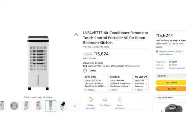 Cruise யின் இந்த 1 Ton Portable AC ரூ,32,990க்கு லிஸ்ட்டிங் செய்யப்பட்டுள்ளது, மேலும் இதில் பேங்க் ஆபராக ரூ,1500 டிஸ்கவுண்ட் வழங்கப்படுகிறது அதன் பிறகு இதை வெறும் ரூ,31,490 யில் வாங்கலாம்இதை தவிர amazon pay மூலம் வாங்கினால் கேஷ்பேக் மற்றும் நோ கோஸ்ட் EMI போன்ற பல வசதி பெறலாம் மேலும் இதன் அம்சங்கள் பற்றி பேசினால், இது 1 Tons உடன் ஏண்டி பெக்டேரியல் பில்ட்டர் அம்சத்துடன் வருகிறது மேலும் இது ஒரு 4-in-1: AC ஆகும்.