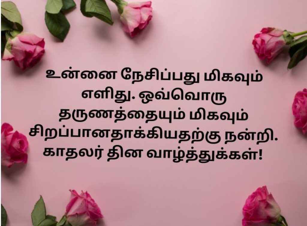 • காதலர் தினத்தன்று, நம் நட்பு எவ்வளவு அர்த்தம் என்பதை நான் நினைவு கூர்கிறேன். என் நெருங்கிய நண்பர்களில் ஒருவருக்கு காதலர் தின வாழ்த்துக்கள்!