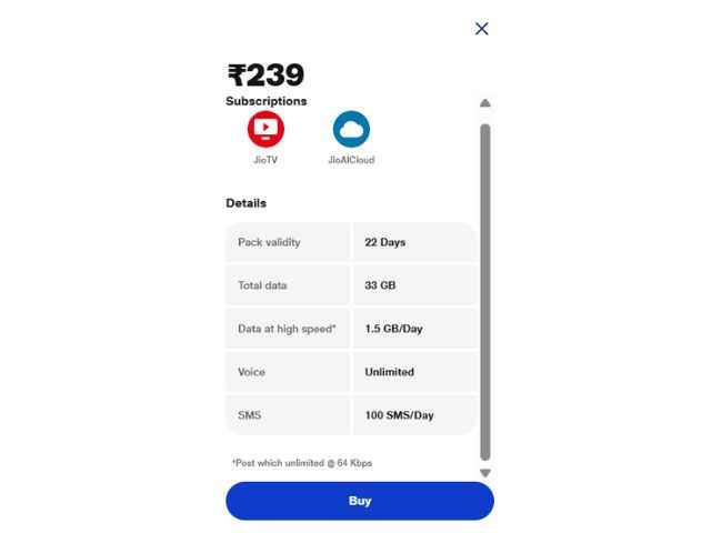 Jio ரூ,239 கொண்ட திட்டம்.