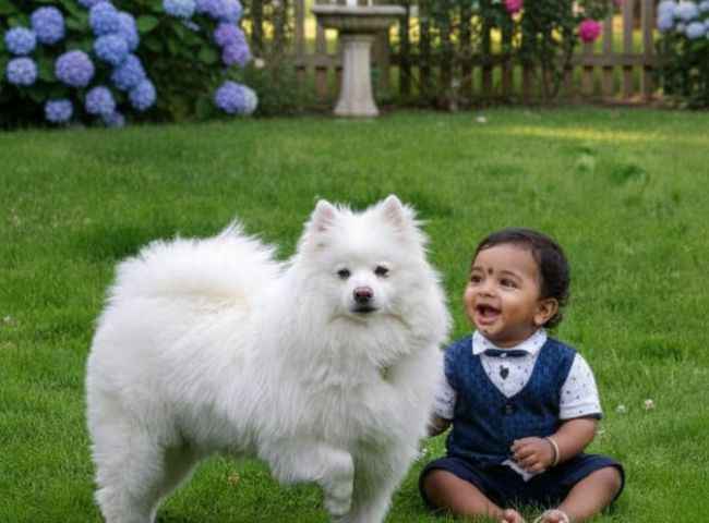 - உங்களின் ஆடை அல்லது லொகேஷனை மாற்றலாம்: அதாவது நீங்கள் உங்களின் பல போட்டோ ஒரே நேரத்தில் அப்லோட் செய்து அந்த போட்டோவை ஒன்றாக சேர்த்து புதிய போட்டோவை உருவாக்கலாம் உதரணமாக இதில் ஒரு குழந்தை போட்டோவை பார்க்கலாம் முதலில் நாய் மற்றும் குழந்த போட்டோவை அப்லோட் செய்யப்படுகிறது அதன் பின் அந்த AI இமேஜ் மூலம் அந்த நாய் உடன் கிரவுண்டில் இருப்பதை பார்க்கலாம்.