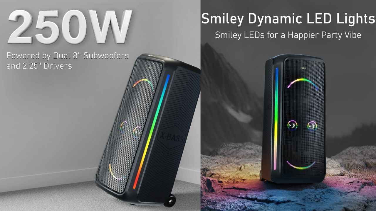இந்த பிராண்ட் இந்த RGB ஸ்ட்ரிப்களை ஒரு ஸ்மைலி வடிவத்தில் வடிவமைத்துள்ளது, இது உங்கள் பார்ட்டிகளுக்கு டைனமிக் லைட்டிங்கைக் கொண்டுவருகிறது. உங்கள் பார்ட்டிகளை அடுத்த கட்டத்திற்கு எடுத்துச் செல்லும் போது, உங்கள் நண்பர்கள் மற்றும் குடும்பத்தினருடன் வேடிக்கையான மற்றும் தெளிவான karaoke அனுபவத்திற்காக UHF karaoke மைக்ரோஃபோன் மற்றும் எக்கோ கன்ட்ரோலையும் வழங்குகிறது. கணிசமான 8,000mAh பேட்டரி திறன் இந்த வயர்லெஸ் பார்ட்டி ஸ்பீக்கரை இயக்குகிறது, இது 6 மணிநேர ஆடியோ பிளேபேக்கை உறுதியளிக்கிறது. இந்த ஸ்பீக்கர்கள் புளூடூத் 5.3 வழியாக கனெக்ஷன் செய்யப்படுகிறது, ஆனால் USB, Aux-in மற்றும் பலவற்றின் வழியாக உடல் கனேக்ஷங்களையும் சப்போர்ட் செய்கிறது.
