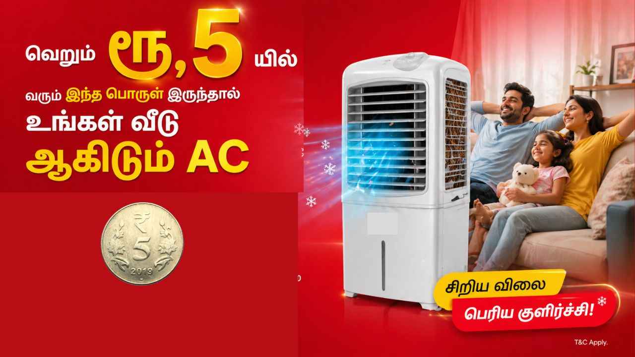 தமிழ்நாட்டில் கொளுத்தும் வெயில் அதிகரித்தும் வரும் நிலையில் மக்கள் வெயிலின் வெப்பத்தின் தாக்கத்தால் மிகவும் சிரமம்பட்டு வருகிறார்கள், அனைவராலும் AC வாங்குவது என்பது சாத்தியமில்லை, ஆனால் உங்கள் வீட்டில் சமயலறையில் இருக்கும் பொருள் உங்கள் வீட்டை AC போல மாற்றும் அது எப்படி என கேள்வி பலருக்கும் உண்டு, ஆனால் சில சமயங்களில், கூலர் எதிர்பார்த்த அளவு கூளிங்கை தருவதில்லை. அதற்காக என்ன செய்வது என குழம்பும் மக்களுக்காக , சில எளிய மற்றும் குறைந்த செலவிலான பொருட்களுடன் கையாள்வதன் மூலம் உங்கள் கூலிங் பர்போமான்ஸ் நீங்கள் கணிசமாக மேம்படுத்தலாம் அதும் வெறும் ரூ,5 க்குள் இதை செய்யலாம் அது எப்படி என்பதை பற்றி முழுசா பார்க்கலாம் வாங்க.
