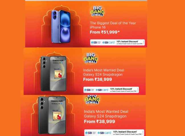 இ-காமர்ஸ் தளமான ப்ளிப்கார்டில் தீபாவளி பண்டிகையை முன்னிட்டு அக்டோபர் 11 ஆம் தேதிமூன்றாம் கட்டம் விற்பனை Flipkart Big Bang Diwali Sale ஆரம்பமாக இருக்கிறது ப்ளஸ் மற்றும் ப்ளிப்கார்ட் ப்ளாக் மெம்பர்களுக்கு 24 மணி நேரம் முன்னாடியே பெறலாம் இது தவிர, கூடுதல் சேமிப்பிற்காக, SBI டெபிட் கார்டு அல்லது கிரெடிட் கார்டு மூலம் பணம் செலுத்தினால் 10 சதவீத இன்ஸ்டன்ட் தள்ளுபடியும் கிடைக்கும். iPhone 16, Samsung Galaxy S24 FE, மற்றும் Google Pixel 10 Pro Fold போனை அதிரடி டிஸ்கவுண்ட் பெறலாம் மேலும் இதை பற்றி பார்க்கலாம் வாங்க.