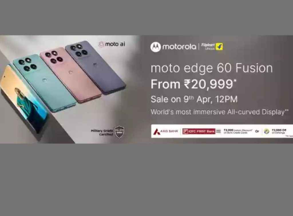 Motorola Edge 60 Fusion இந்த போனின் 8GB RAM மற்றும் 256GB யின் விலை ரூ,20,999க்கு வைக்கப்பட்டுள்ளது மேலும் அதன் 12GB RAM மற்றும் 256GB ஸ்டோரேஜ் விலை 22,999ரூபாயாக இருக்கிறது மேலும் இந்த போனின் விற்பனை இ-காமர்ஸ் தளமான ப்ளிப்கார்டில் ஏப்ரல் 9 தேதி விற்பனைக்கு வருகிறது மேலும் இதை பல பேங்க் ஆபர் நன்மையுடன் இந்த போனை இன்னும் குறைந்த விலையில் வாங்கலாம் இதை தவிர நீங்கள் இதன் அதிகாரபூர்வ வெப்சைட் மற்றும் ரீடைல் ஸ்டோரில் வாங்கலாம்.