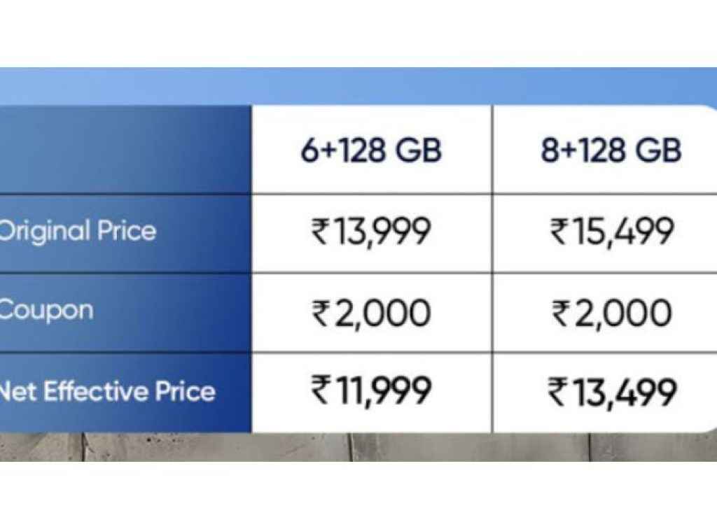 Realme Narzo 90X 5G போனின் விலை 6GB+128GB ஸ்டோரேஜ் விலை ரூ,13,999க்கும் மற்றும் 8GB+128GB ச்டோரேஜின் விலை 15,499ரூபாய்க்கும் அறிமுகம் செய்யப்பட்டுள்ளது ஆனால் இதில் கூப்பன் டிச்கவுண்டாக ரூ,2000 இன்ஸ்டன்ட் டிஸ்கவுண்ட் வழங்கப்படுகிறது அதன் பிறகு இதை ரூ,11,999 மற்றும் ரூ,13,499க்கு வாங்கலாம் மேலும் இந்த போனின் முதல் விற்பனை டிசம்பர் 23 அன்று நடைபெறும் அதுவே இதன் மறுபக்கம் Realme 90 5G போனில் 6GB+128GB ஸ்டோரேஜ் விலை ரூ,16,999க்கும் மற்றும் 8GB+128GB ச்டோரேஜின் விலை 18,499ரூபாய்க்கும் அறிமுகம் செய்யப்பட்டுள்ளது ஆனால் இந்த போனில் இன்ஸ்டன்ட் ரூ,1000 கூப்பனுக்கு பிறகு இதை ரூ,15,999 மற்றும் ரூ,17,499க்கும் வாங்கலாம் மேலும் இந்த போனின் விற்பனை டிசம்பர் 24 அன்று செய்யப்படும்.