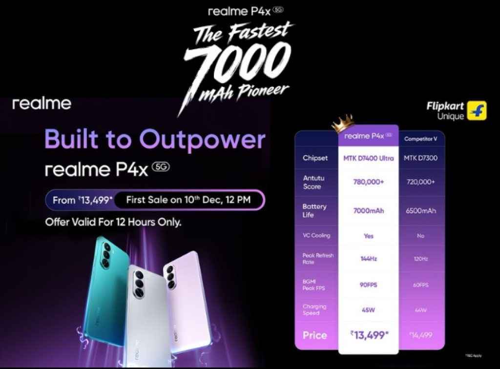 Realme இந்தியாவில் அதன் புதிய Realme P4x 5G போன் அறிமுகம் செய்யப்பட்டுள்ளது