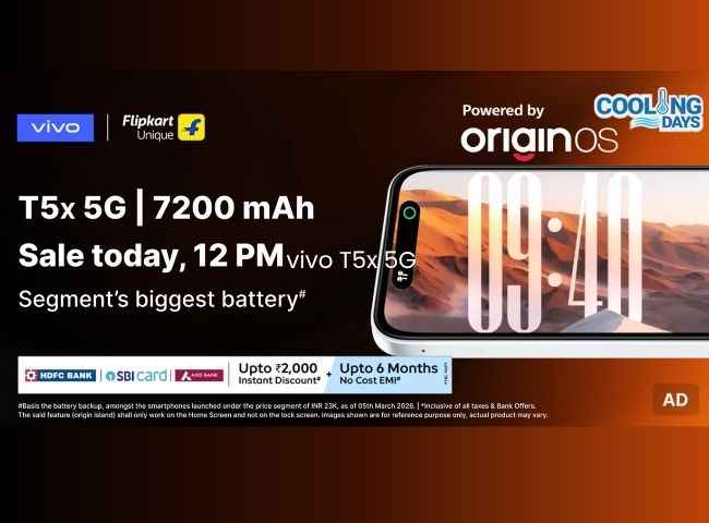 Vivo T5x 5G போன் இன்று இ-காமர்ஸ் தளமான பிளிப்கார்டில்இன்று முதல் முறையாக விற்பனைக்கு வருகிறது