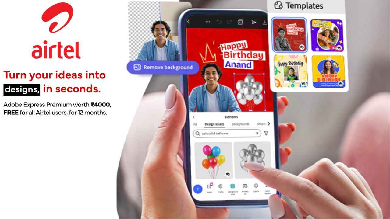 Airtel அதன் கஸ்டமர்களுக்கு Adobe உடன் கைகோர்த்துள்ளது, இது அதன் கஸ்டமர்களுக்கு Adobe Express ப்ரீமியம் நன்மையை இலவசமாக வழங்குகிறது, இந்த ப்ரீமியம் திட்டத்தின் விலை ரூ,4000 ஆகும். ஆனால் இப்போது, ஏர்டெல்லின் டிஜிட்டல் நன்மைகளின் ஒரு பகுதியாக, மில்லியன் கணக்கான பயனர்கள் இந்த அம்சத்தை இலவசமாகப் பெறுகிறார்கள். இதை தவிர அர்கனவே ஏர்டெல் அதன் கஸ்டமர்களுக்கு Perplexity AI Pro அம்சத்தை 1 ஆண்டு வரை பெரும் வசதியை இலவசமாக வழங்குகிறது மேலும் இப்பொழுது ஏர்டெல்-அடோப் கூட்டாண்மை மூலம் கிடைக்கும் Adobe Express Premium இலவசம் என அறிவித்துள்ளது மற்றும் இதன் நன்மைகளை பற்றி பார்க்கலாம் வாங்க.