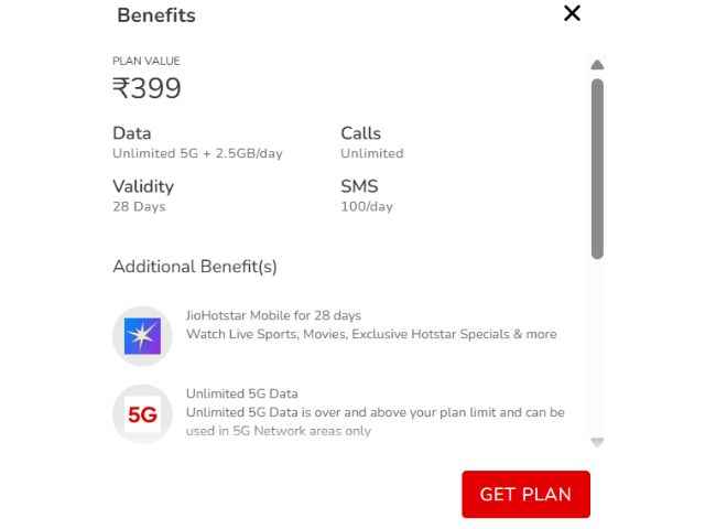 Airtel ரூ,399 திட்டத்தை பற்றி பேசினால் அன்லிமிடெட் வொயிஸ் காலிங் தினமும் 2.5GB யின் டேட்டா இதனுடன் கஸ்டமர்களுக்கு அன்லிமிடெட் 5G டேட்டா மற்றும் தினமும் 100 SMS போன்ற நன்மையை வழங்குகிறது இதனுடன் இந்த திட்டத்தின் வேலிடிட்டி 28 நாட்கள் தான் வழங்கப்படுகிறது, இதனுடன் இதில் கூடுதல் நன்மையாக JioHotstar மொபைல் சப்ஸ்க்ரிப்ஷன் Apollo 24|7 Circle மற்றும் Wynk Music ஆகியவை Airtel தேங்க்ஸ் நன்மைகளுடன் போன்ற நன்மைகள் வழங்குகிறது .