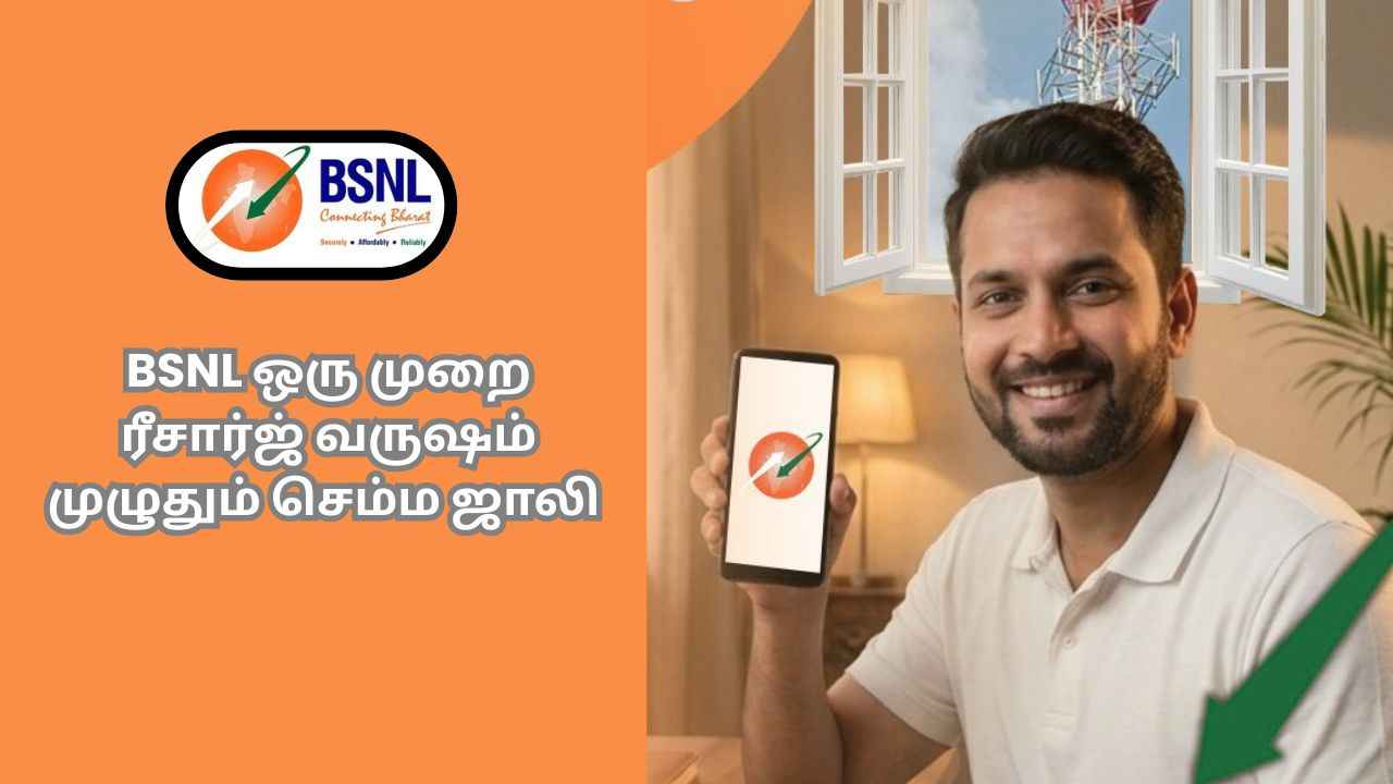 புது வருடம் 2026 ஆம் ஆண்டு பிறக்க போகுது, அரசு நடத்தி வரும் டெலிகாம் நிறுவனமான பார்த் சஞ்சார் நிகம் லிமிடெட்(BSNL) அதன் கஸ்டமர்களுக்கு 1 வருட வேலிடிட்டி வழங்கும் திட்டத்தை கொண்டுவந்துள்ளது குறைந்த விலையில் 365 நாட்கள் வேலிடிட்டி அன்லிமிடெட் காலிங் டேட்டா போன்ற பல நன்மை வழங்கும் மேலும் நீங்கள் இந்த திட்டத்தை 1 முறை ரீச்சார்ஜ் செய்து 1 வருடம் வரை நிம்மதியாக இருக்கலாம் அந்த வகையில் இந்த திட்டத்தின் விலை ரூ,2399 ஆகும் இதன் முழு தகவல்களை பற்றி பார்க்கலாம் வாங்க.