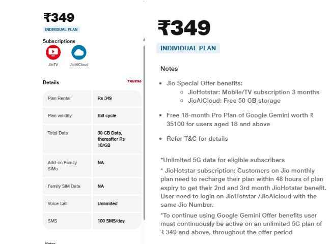 இந்த திட்டத்தின் மிகப்பெரிய பலம் அன்லிமிடெட் 5G டேட்டா. இதன் பொருள் கஸ்டமர்கள் அதிவேக இன்டர்நெட்டில் முழு பலனையும் பெறுவார்கள். கூடுதலாக, இந்த பேக்குடன் மூன்று மாதங்களுக்கு ஜியோஹாட்ஸ்டார் அக்சஸ் நிறுவனம் வழங்குகிறது. இருப்பினும், நீங்கள் ஒவ்வொரு மாதமும் சரியான நேரத்தில் ரீசார்ஜ் செய்தால் மட்டுமே ஹாட்ஸ்டார் அணுகல் தொடரும் என்பது குறிப்பிடத்தக்கது.