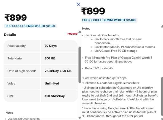 ஜியோவின் ரூ.749 மற்றும் ரூ.899 திட்டங்கள் கூடுதல் டேட்டா மற்றும் பல நன்மைகளை வழங்குகின்றன. இரண்டு திட்டங்களையும் கொண்ட பயனர்கள்: