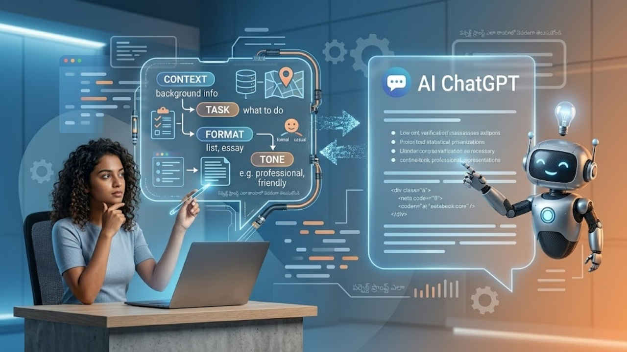 How to write Prompts for ChatGPT: నేటి డిజిటల్ యుగంలో చాట్జిపిటి వంటి అధునాతన AI టూల్స్ ప్రజలకు చాలా ఉపయోగకరంగా మారాయి. అయితే, యూజర్ ఇచ్చే ప్రాంప్ట్ (Prompt) పై ఆధారపడి మాత్రమే వచ్చే రిజల్ట్ నాణ్యత ఆధారపడి ఉంటుంది. అంటే, క్లియర్ గా చెప్పాలంటే మంచి ప్రాంప్ట్ ను ఏఐ మోడల్ కి అందిస్తే మంచి రిజల్ట్ ను మీరు పొందవచ్చు. అందుకే, ఈరోజు చాట్జిపిటి లో పర్ఫెక్ట్ ప్రాంప్ట్ ఎలా రాయాలో వివరంగా తెలుసుకోండి.