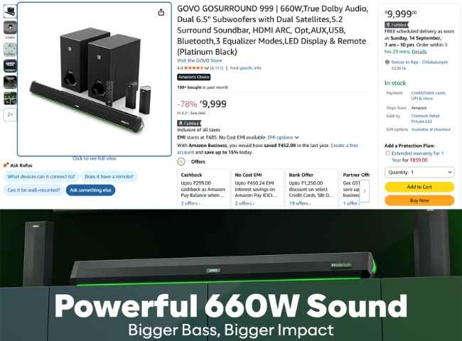 Amazon GIF Sale 2025 కంటే ముందే అమెజాన్ ఇండియా భారీ 5.2 Dolby Soundbar డీల్ అనౌన్స్ చేసింది. సేల్ కోసం చేస్తున్న టీజింగ్ మరియు అర్లీ డీల్స్ లో భాగంగా ఈ భారీ సౌండ్ బార్ డీల్ ను అందించింది. అమెజాన్ అందించిన ఈ బిగ్ డీల్ ద్వారా లేటెస్ట్ 5.2 డాల్బీ సౌండ్ బార్ ను కేవలం రూ. 9,000 రూపాయల బడ్జెట్ ధరలో అందుకునే అవకాశం మీ ముందుకు తెచ్చింది.