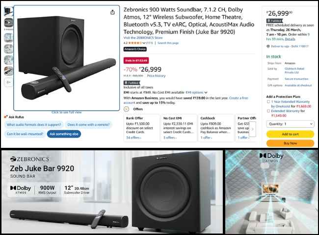 amazon announced big discount on Zebronics 7.1.2 Dolby Atmos soundbar